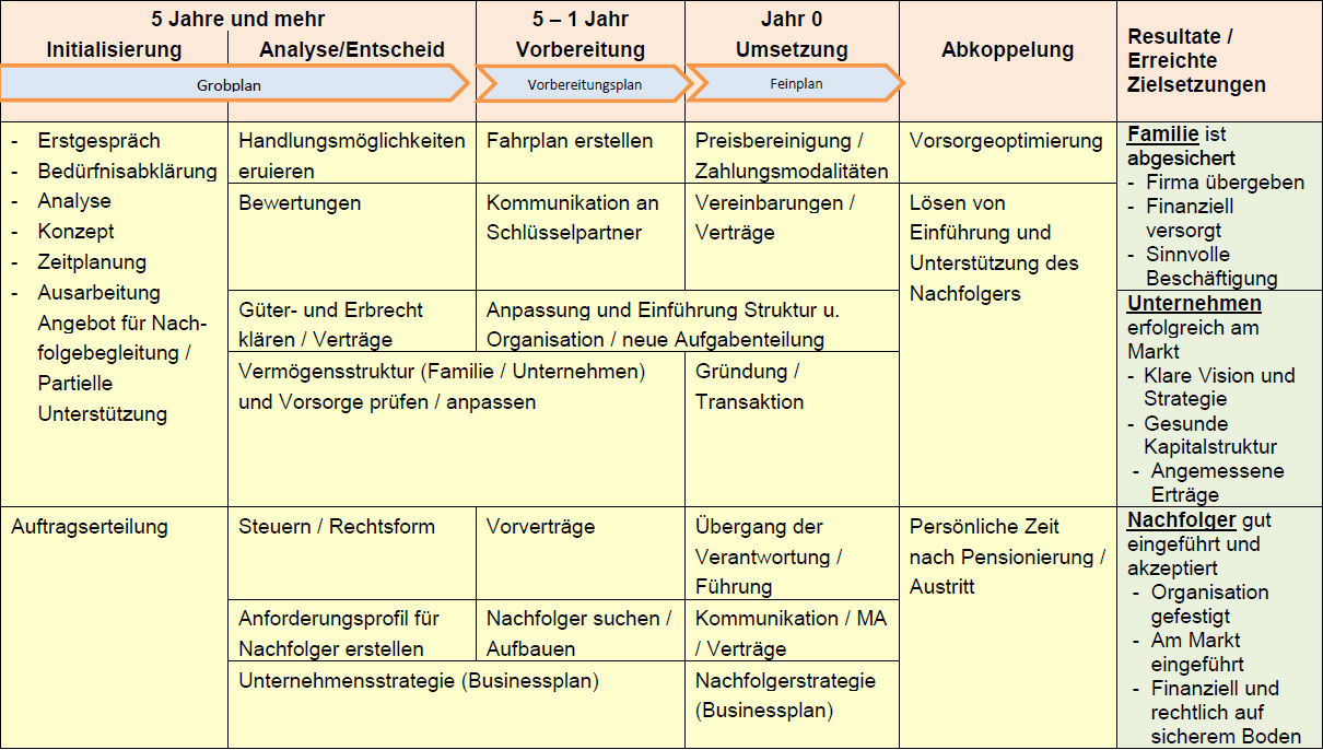 Die Unternehmensnachfolge stellt für die meisten Unternehmen eine einmalige Aufgabe dar. So fehlt hierzu oftmals die nötige Erfahrung, die geeigneten Hilfsmittel oder allenfalls auch ein geeigneter Vorgehensplan.