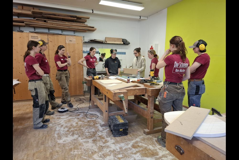 Unter der fachkundigen Leitung der WorldSkills-Teilnehmenden Sven Bürki und Samanta Kämpf verbrachten die angehenden Schreinerinnen spannende Tage. Neben der Herstellung eines Möbelstücks standen das Knüpfen neuer Kontakte, der Austausch von Ideen und die Diskussion über berufliche Entwicklungsmöglichkeiten im Vordergrund.