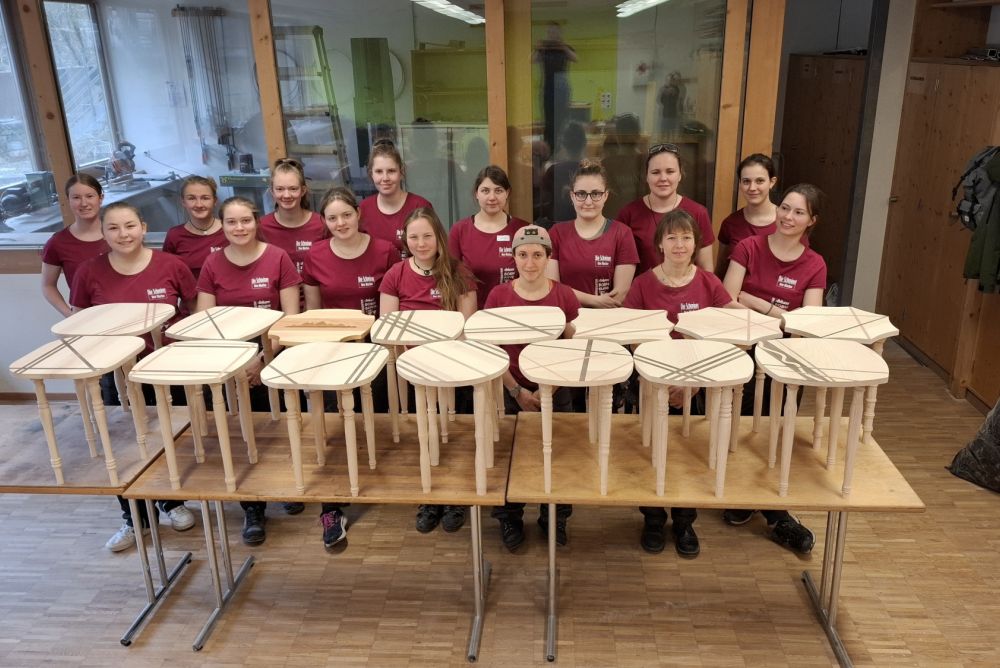 Bei den Frauenpower-Workshops 2024 in Brienz haben die 48 angehenden Schreinerinnen einen Hocker hergestellt. Sie haben jeweils einen Tag gedrechselt und einen geschreinert. Neben den handwerklichen Aktivitäten stand vor allem der Austausch, das Knüpfen neuer Kontakte und die Diskussion über berufliche Entwicklungsmöglichkeiten im Vordergrund.