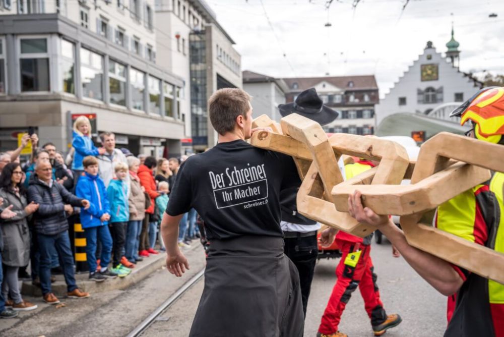 Ab 10.00 Uhr marschierten, singten und tanzten gegen 1200 Teilnehmende durch die Gassen und Strassen von St. Gallen. Graubünden Holz war selbst mit einer Delegation an "Hölzigen" vor Ort und gestaltete den Umzug wie auch den anschliessenden Festakt an der OLMA mit. Vertreten wurde diese Delegation durch den Präsidenten und Geschäftsführer von Graubünden Holz, Präsidenten und Vorstandsmitglieder der Branchenverbände wie auch weiteren Akteuren der Holzkette Graubünden.