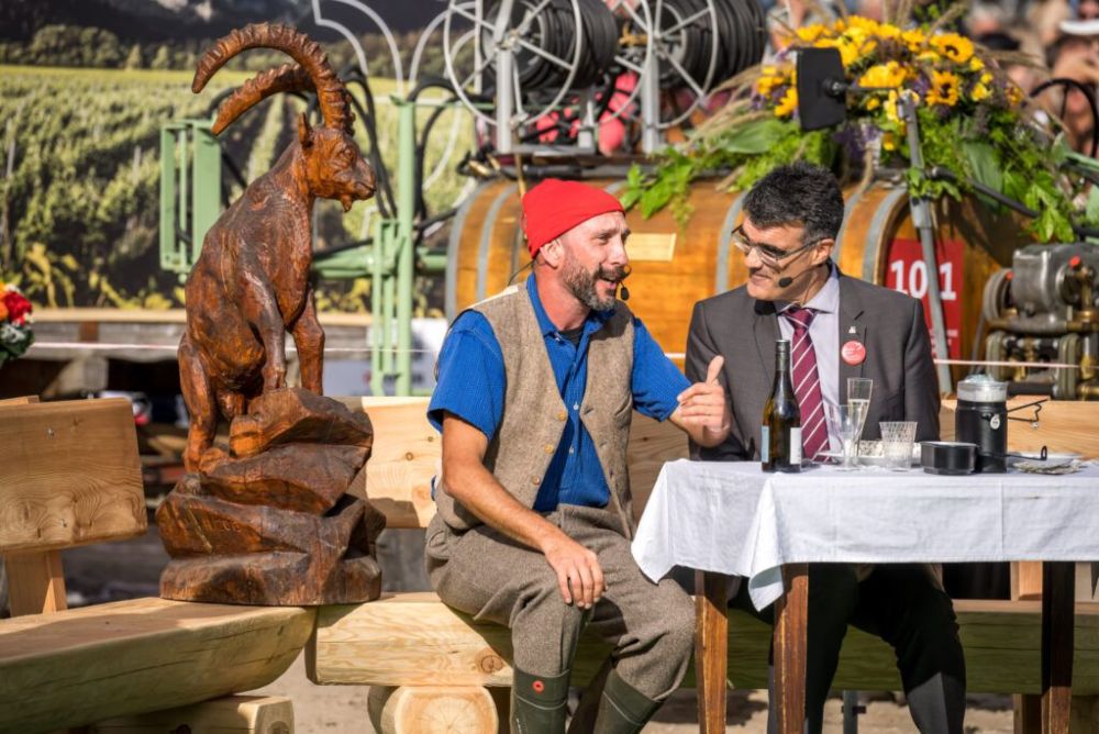 Beim Festakt zeigte sich ein gewaltiges, wald- und holzreiches Bühnenbild. Angefangen beim Arven-Wald des kantonalen Forstgarten hinüber zum Piz Tambo, der in einer Grösse von 4.85 Metern über die Anwesenden wachte. Ein imposantes Schlussbild, welches uns stolz sein lässt auf einen so vielfältigen Kanton, der wahnsinnig viel Potenzial hat.
