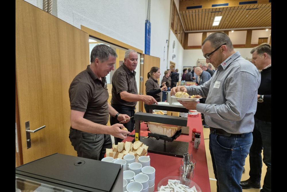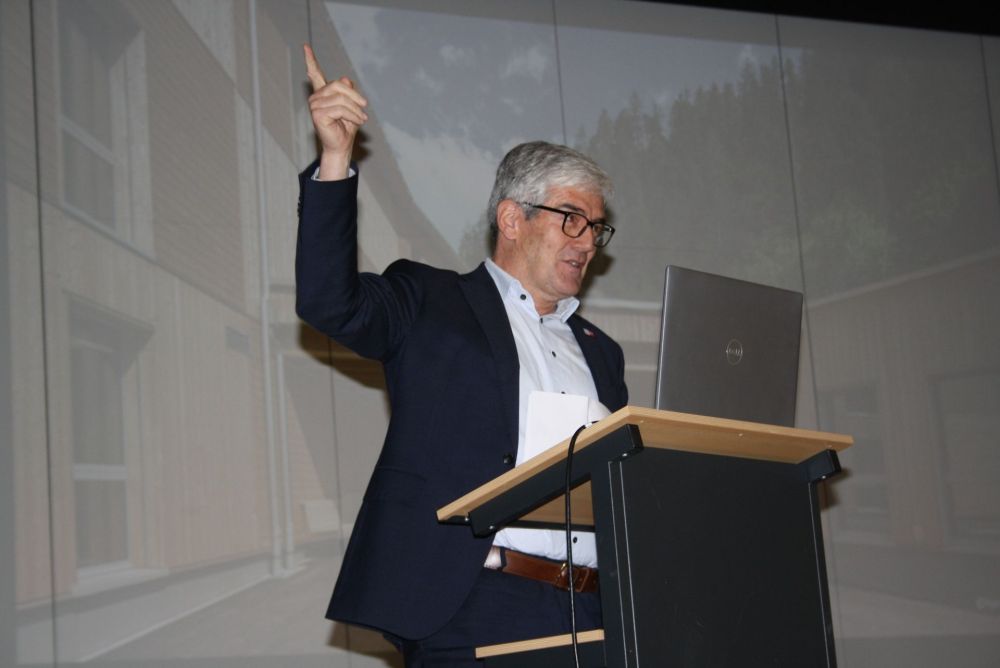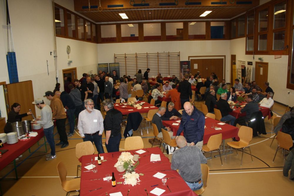 Bei der gemeinsamen Orientierung gab Gemeindepräsident Victor Peer einen interessanten Einblick über die Gemeinde Valsot. Ramosch und Tschlin fusionierten im Jahr 2013 zu der Gemeinde Valsot und waren die ersten Gemeinden im Engadin die sich für einen Zusammenschluss entschieden. Martina Hänzi von Bun Tschlin informierte über die Vereinigung, welche für das gesamte Catering des Anlasses verantwortlich war. Bun Tschlin vereinigt engagierte Betriebe der Region Tschlin, die mit authentischen Angeboten die Lebensqualität vor Ort sowie einen sanften Tourismus pflegen wollen. Der Regierungspräsident Dr. Jon Domenic Parolini dankte in seinen Grussworten den anwesenden Mitgliedern beider Verbände für ihre Arbeit. Für die Zukunft sieht Parolini im Rahmen des Aktionsplans Green Deal Graubünden eine grosse Chance für die Holzbranche. Den Abschluss der gemeinsamen Orientierung machte der Präsident von Graubünden Holz Peter Flütsch und berichtete über die Tätigkeiten und laufenden Projekte. Bei einem köstlichen Buffet Dinner mit Speisen aus der Region, untermalt von musikalischen Darbietungen durch das Engadiner Schwyzerörgeli-Trio «Rümli Gäng», genossen die rund 100 Anwesenden den Rest des Abends mit dem persönlichen Austausch.