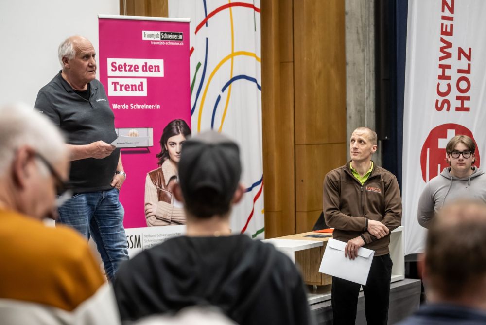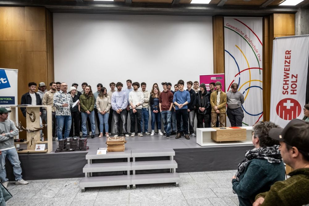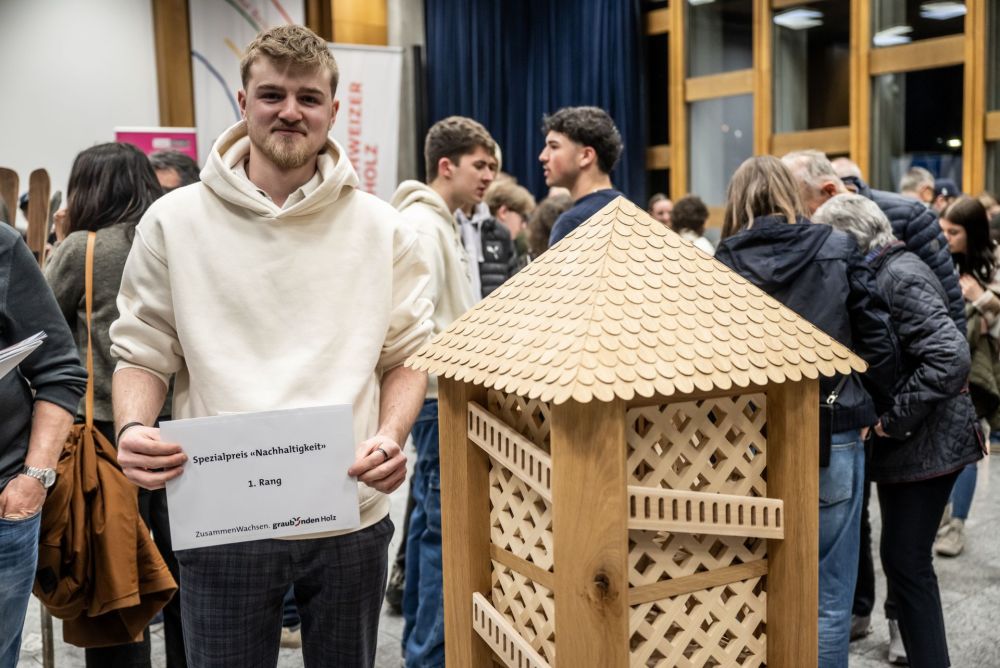 Die besten drei Plätze wurden mit einer Gesamtpreissumme von CHF 1'000.- ausgezeichnet, welche von Graubünden Holz gestiftet wurden. Den ersten Platz belegte Adrian Rupp, Lötscher & Co. AG, Schiers, gefolgt von Lennard Neumüller, Werkplatz Ovenstone, Sent auf dem zweiten Platz und Risch Fadri Müller, Engadiner Lehrwerkstatt für Schreiner, Samedan der den dritten Platz erreichte. Zum Abschluss der Veranstaltung lud Graubünden Holz die Anwesenden zu einem grosszügigen Apéro ein, um die Leistungen der Lernenden gebührend zu feiern.