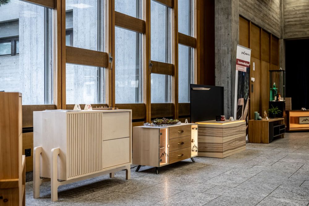 Riccardo Dasoli, Berufsschullehrer der GB Chur und Davos hob in seiner Begrüssungsrede die beeindruckende Leistung der Lernenden hervor: «Ihr dürft so stolz auf das sein, was ihr hier geleistet habt.» Auch Martin Good, Direktor der Gewerblichen Berufsschule Chur, betonte in seiner Ansprache den Berufsstolz: «Ich sehe hier Kunstwerke. Was ihr mit euren eigenen Händen erschaffen habt, ist die beste Werbung für den Schreinerberuf.»