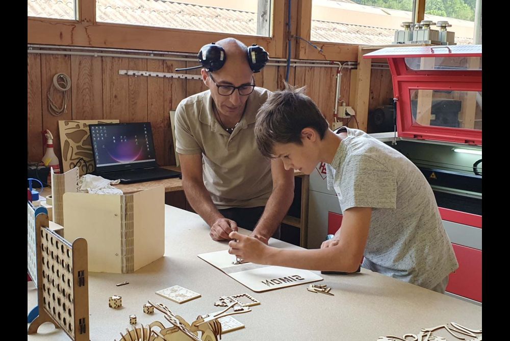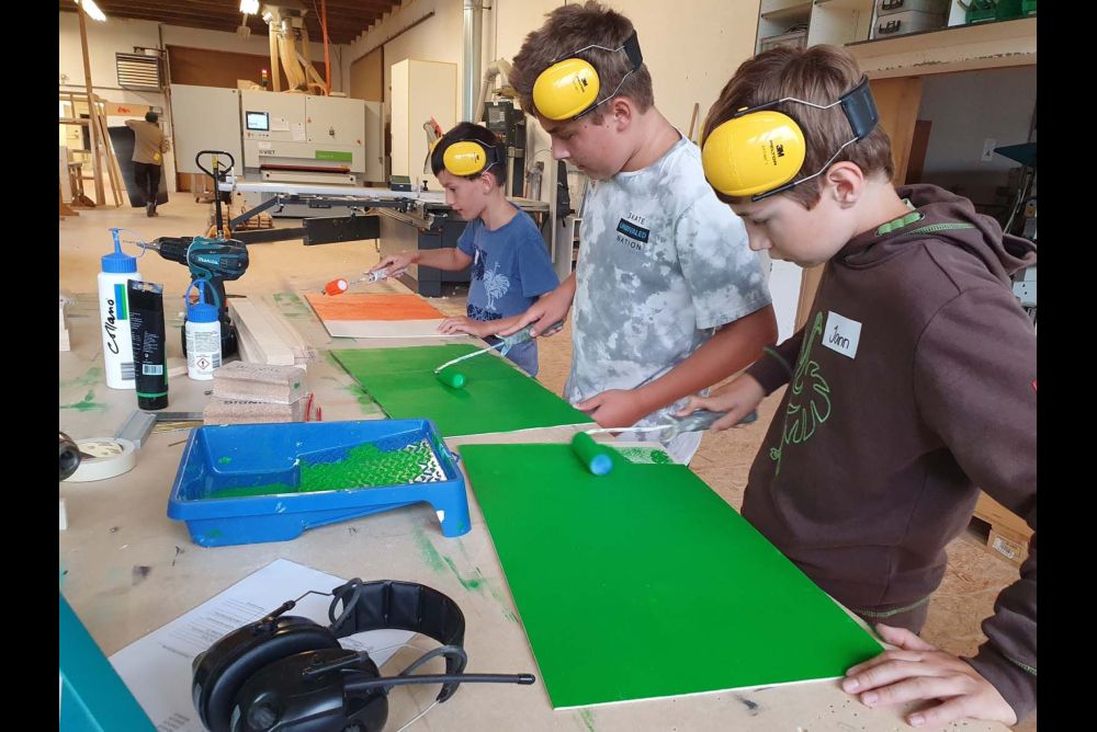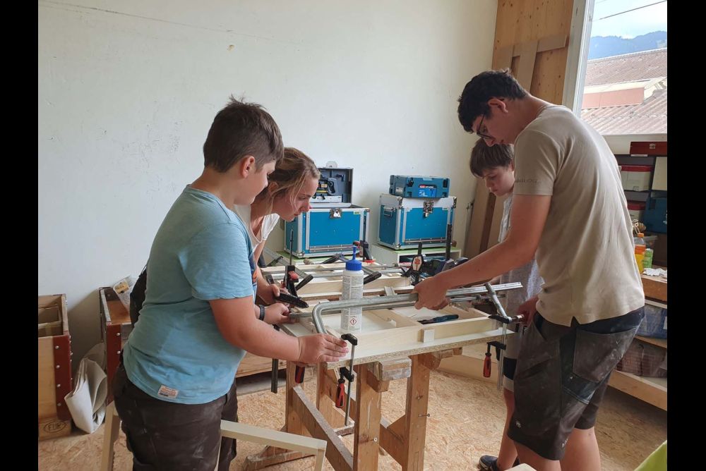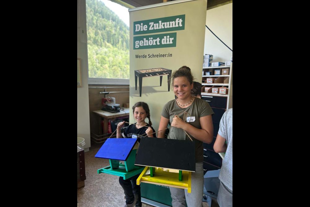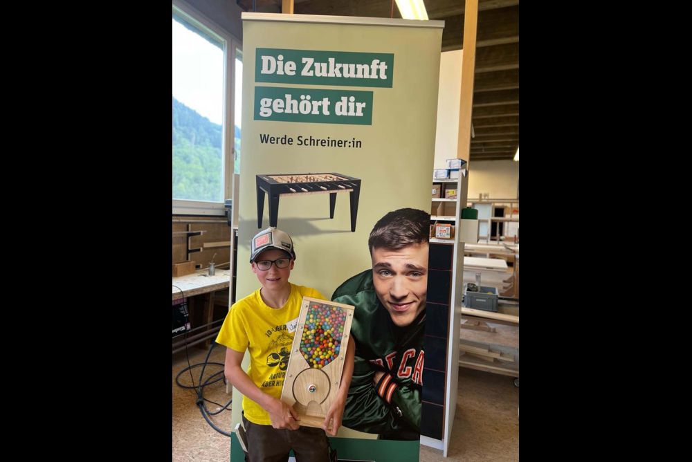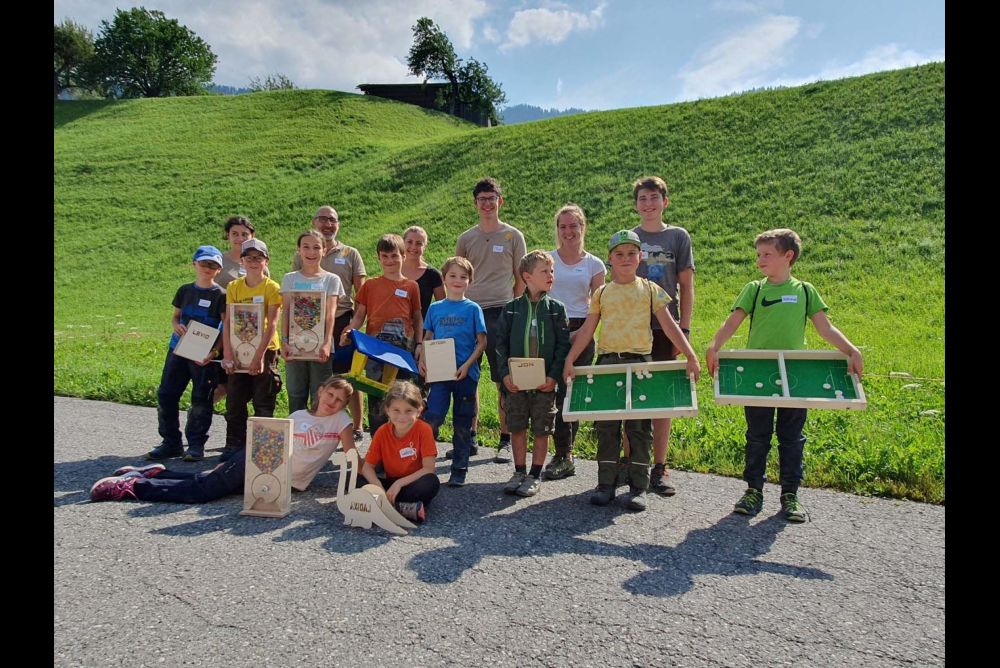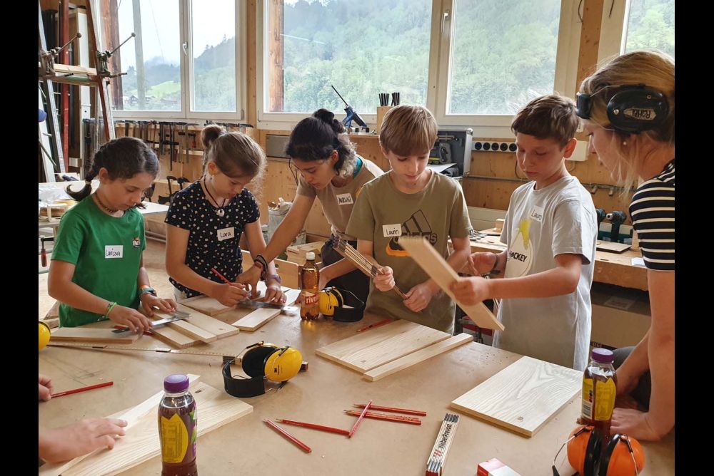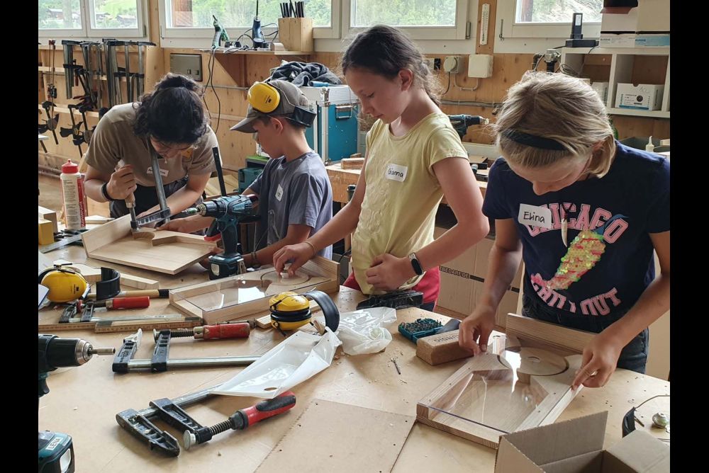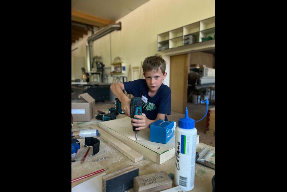 "Heb Holz!", sagt der Prättigauer, wenn ihn das Glück nicht verlassen soll. Unter diesem Motto durften während drei Tagen je 10 Kinder einen Tag in der Schreinerei verbringen. Die Firma Bardill Holz AG überliess es nicht dem Glück, dass am Abend fröhliche Kindergesichter entlassen werden konnten. Es wurde gesägt, geschliffen, gebohrt und verleimt, aber auch gelacht und gespielt. Entstanden sind bunte und persönliche Werke – vom Vogelhäuschen, Fingerfussball, Balanceboard bis zur Süssigkeiten-Maschine, für jede:n hatte es etwas Passendes dabei. Wie flink die Kinderhände waren und wie motiviert die Schüler:innen arbeiteten, zeigten die Resultate, die sie am Abend mit nach Hause nehmen durften. Und wenn am Ende die involvierten Arbeiter:innen glücklich sind und die Eltern so dankbar reagieren, darf man wohl behaupten, dass es am fehlenden Interesse der Kinder nicht liegen kann.