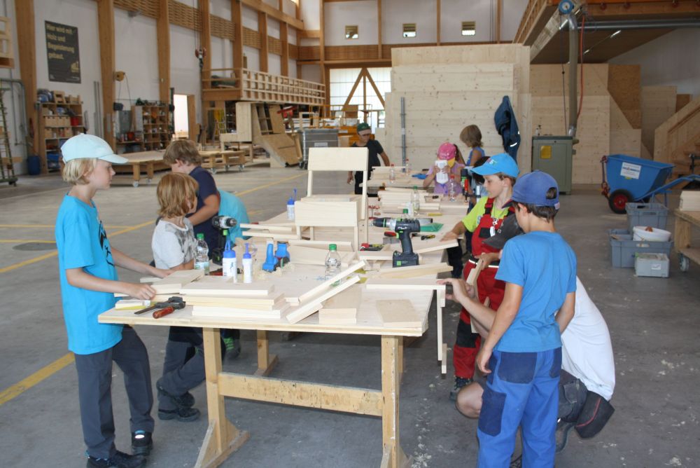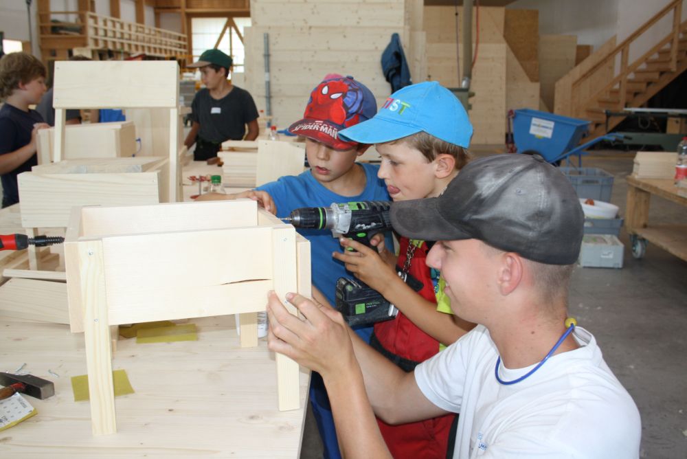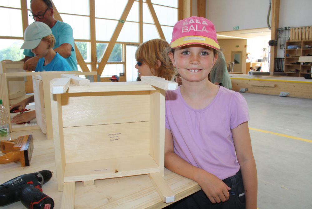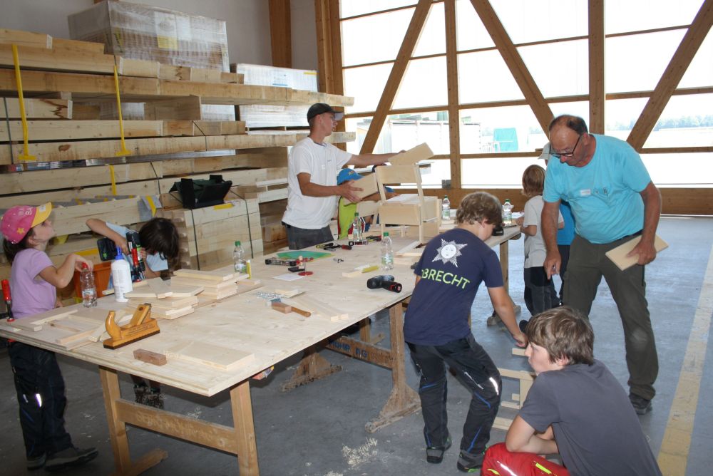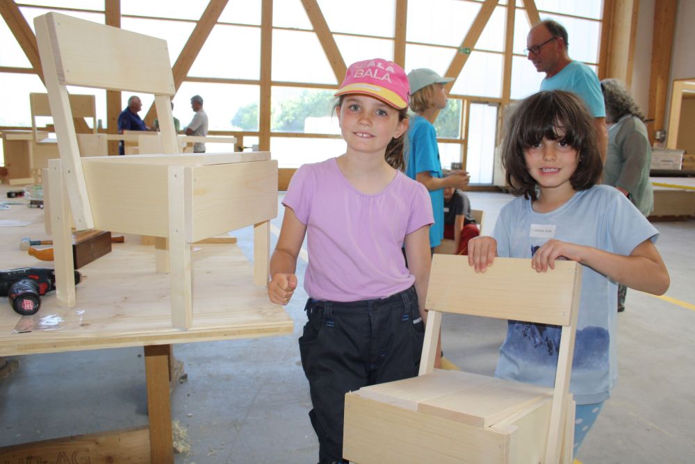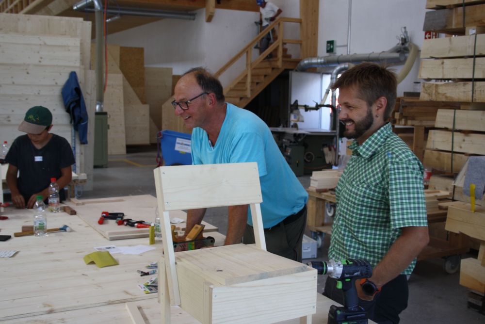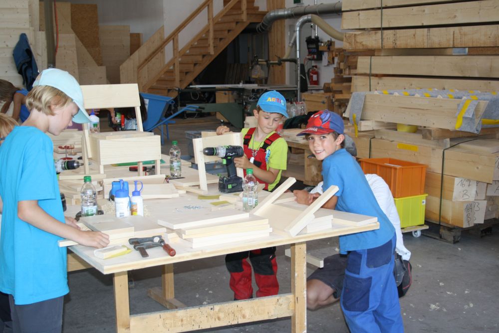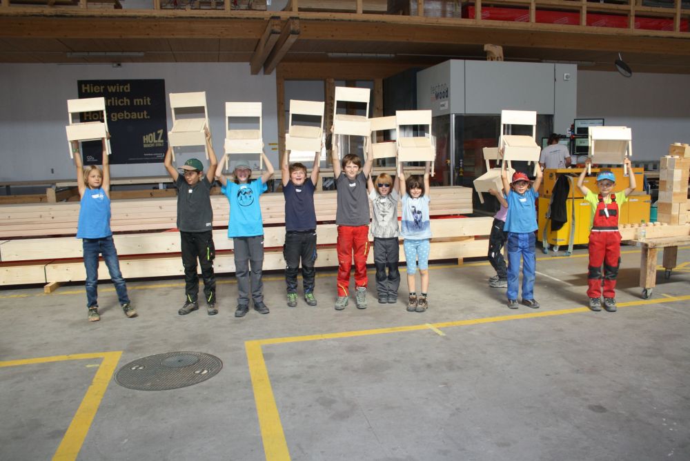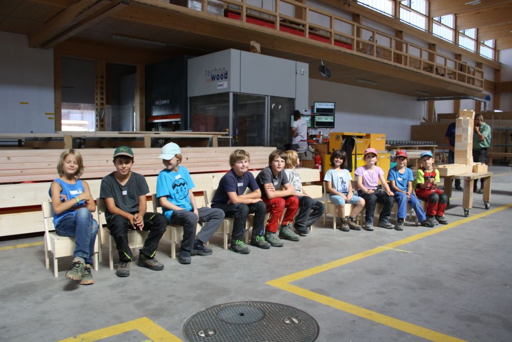 In der Sägerei waren die Kinder dabei wie ein Stamm zu Brettern eingeschnitten worden ist. Die Blockbandsäge in Maienfeld ist bereits über 70 Jahre in Betrieb und funktioniert auch heute noch wie am ersten Tag. Am Nachmittag wurde in der Holzwerkstatt der Gebr. Möhr AG aus vorbereiteten Holzlatten- und brettern und unter fachkundiger Anleitung eines Zimmermannslernenden ein eigener Holzstuhl zusammengebaut. Diesen Holzstuhl durften sie am Schluss des Tages mit nach Hause nehmen.