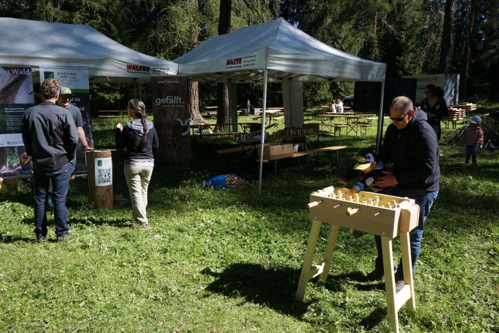 Graubünden Holz, die Selva, der VSSM GR, Holzbau Schweiz Sektion Graubünden haben zusammen vor Ort die Holzkette repräsentiert und mit verschiedenen Tätigkeiten die Holzketten-Verbände und Ihre Arbeit vorgestellt.